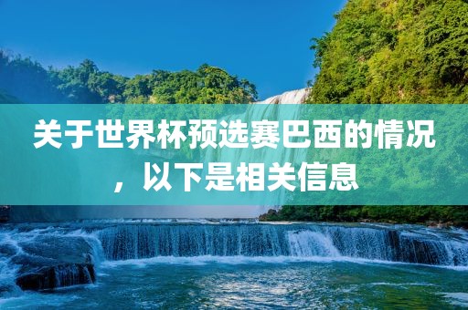 摘要:关于世界杯预选赛巴西的情况,目前巴西足球队表现出色,在预选赛中展现出了强大的实力和潜力。巴西队员技术娴熟,配合默契,展现出极高的竞技水平。在比赛中,巴西队展现出了强烈的进攻意识和出色的防守能力,赢得了众多比赛。巴西队也面临一些挑战和竞争,需要继续保持团队精神和努力备战,以确保顺利晋级世界杯。
